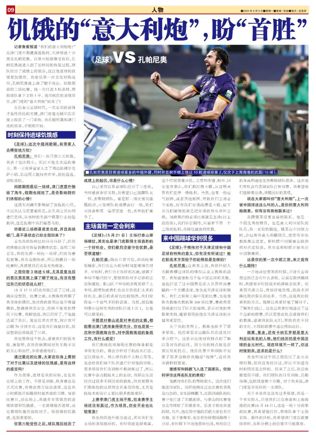 孔帕尼奧:在我來之前,我的經紀人也跟我聊過球隊的情況以及主教練的故事。我知道他相當於是中國足球的英雄,是他打進了讓中國男足進入世界盃決賽圈的一個關鍵進球,他也是天津足球的旗幟。我們之前和上海申花的比賽,也是他作爲教練執教的第100場比賽,賽前我看到球迷打出了巨大的海報,表示對他的尊敬和支持,能夠看得出他在天津足球的分量和重要性。