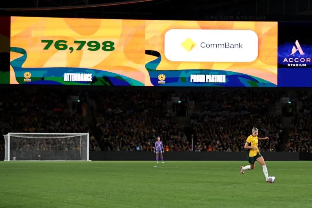 但近年女足在歐洲、北美、澳新得到井噴式發展,觀衆人數飆升。2021年11月澳大利亞女足同樣在悉尼競技場與美國女足熱身,吸引了3.6萬觀衆觀賽,刷新澳大利亞本土女足比賽觀衆人數紀錄。去年7月女足世界盃前,澳大利亞女足在墨爾本與法國女足熱身,觀衆人數突破5萬大關。之後女足世界盃悉尼競技場連續5場比賽滿座,觀衆人數突破7.5萬。剛結束的澳超女足聯賽觀衆總人數達到31.2萬,比之前賽季激增1.27倍。