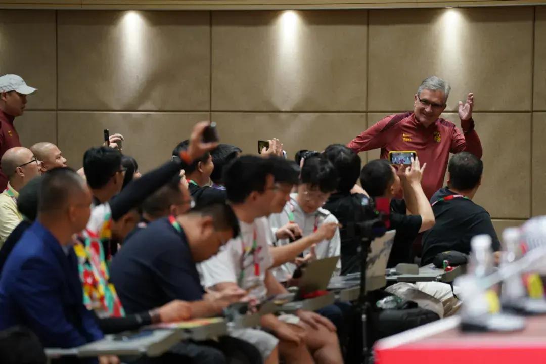 本場賽前發佈會,整個發佈廳擠得滿滿當當,很多記者都是站着參加了發佈會。不只是伊萬,作爲老隊員的王大雷也感慨:“我是第一次代表國家隊參加這麼隆重的發佈會,看到這麼多的媒體記者,我感到有點緊張。”他同時表示:“沒有華麗的語言,只是希望帶領球隊贏得比賽,獻給球迷,這很可能是我最後一次衝擊世界盃了,非常珍惜,也會更加努力。”