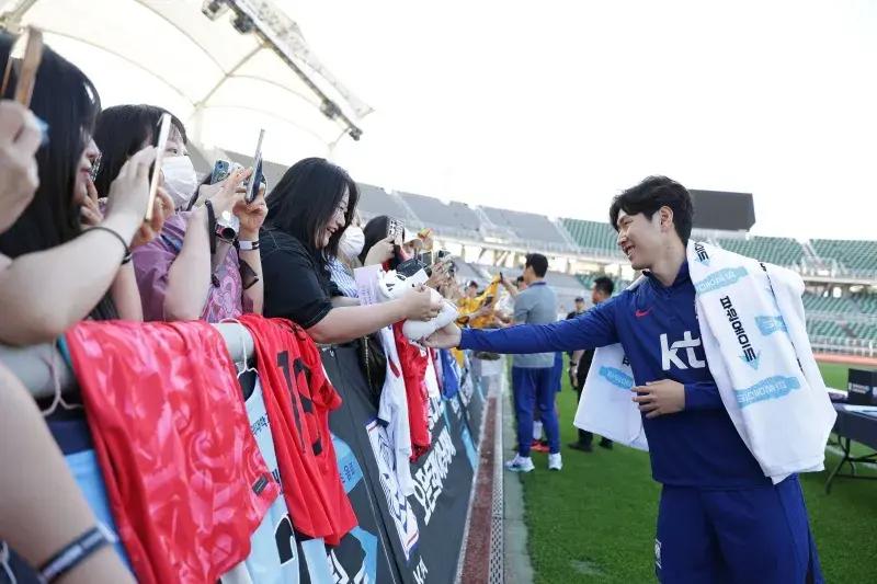感受到了幾個月來前所未有的球迷熱情,韓國球員心情大好。一小時的訓練,場內笑聲不斷。訓練結束後,黃仁範等球員向球迷贈送了禮物,包括有球員簽名的韓國隊吉祥物白虎玩偶;黃喜燦拿過話筒,鼓勵球迷索要孫興慜的訓練衫,熱刺巨星當即脫下送給球迷;李剛仁等球員也走到場邊爲球迷簽名。