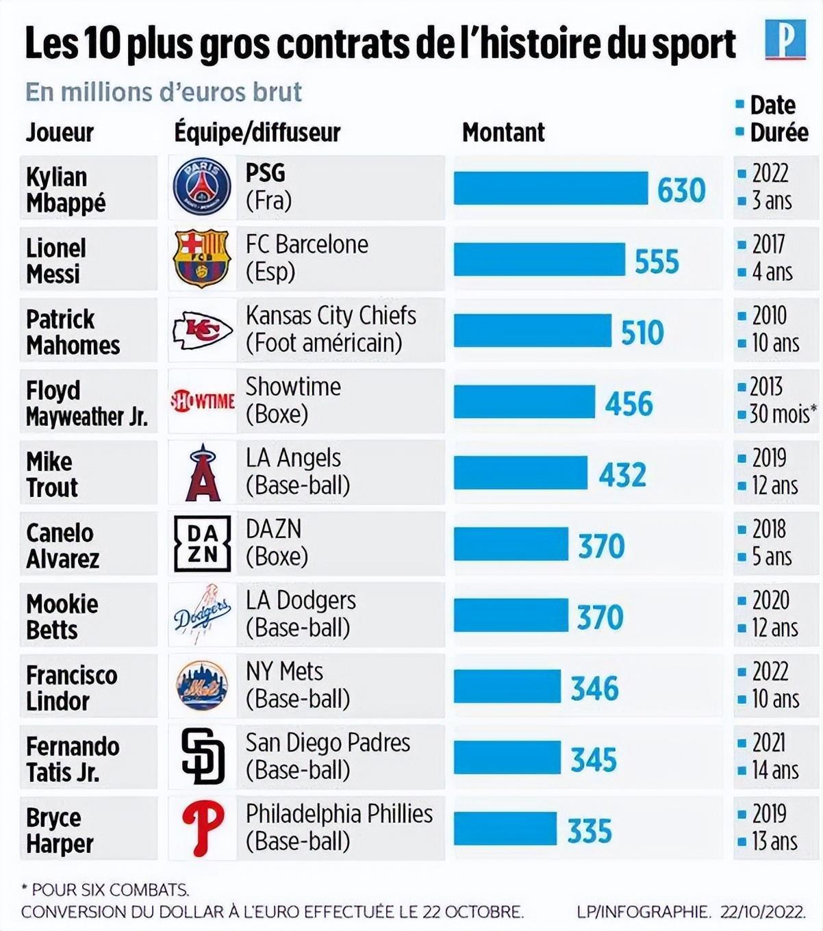 法媒:姆巴佩3年合同總額6.3億歐,超梅西成體育史最貴合同