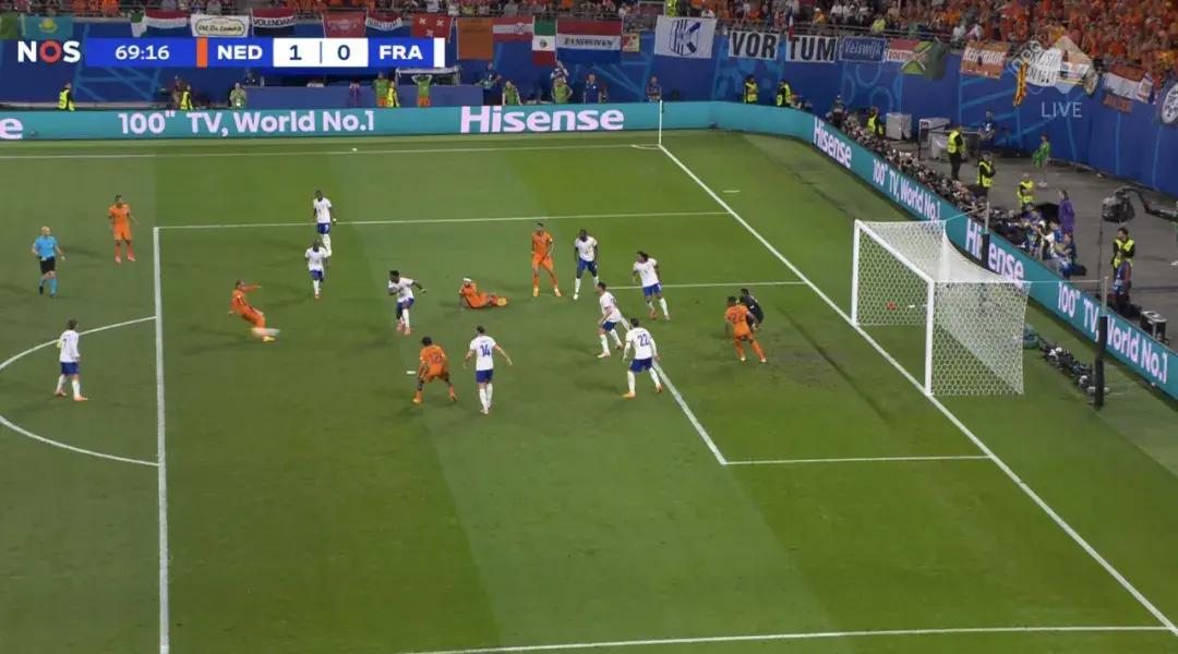 荷蘭隊的進球良機並不比法國隊少,法國隊門將邁尼昂連續撲出弗林蓬和加克波的威脅射門。但最令荷蘭隊意難平的,還是第69分鐘西蒙斯的補射被VAR否決。傾聽了漫長的VAR裁判解釋後,英格蘭主裁判泰勒裁定鄧弗里斯越位且干擾門將,進球無效。
