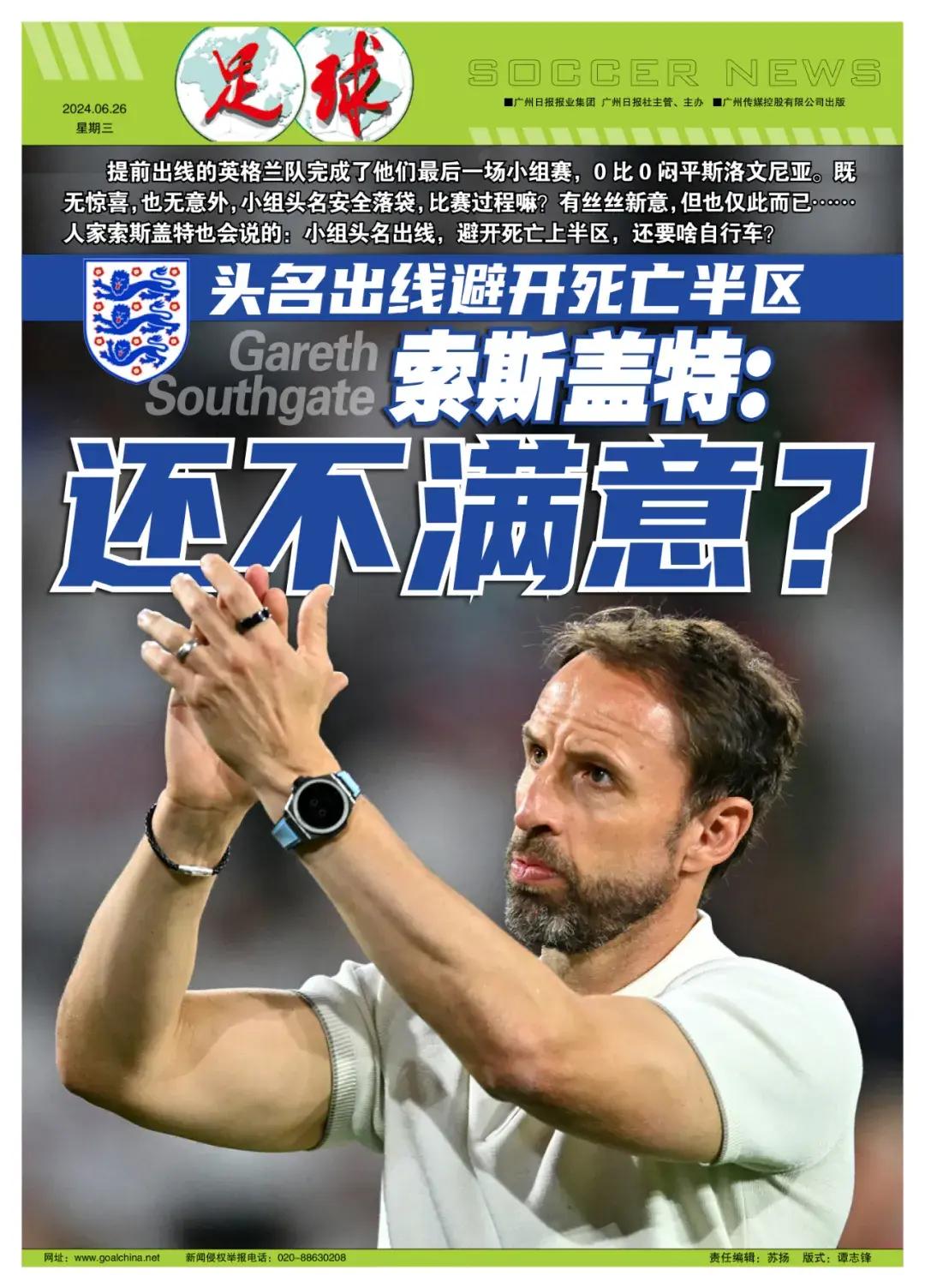 記者韓毅禧評述 在能容納47000名球迷的科隆萊茵能源體育場,提前出線的英格蘭隊完成了他們最後一場小組賽,0比0悶平斯洛文尼亞。既無驚喜,也無意外,小組頭名安全落袋,比賽過程嘛?有絲絲新意,但也僅此而已……人家索斯蓋特也會說的:小組頭名出線,避開死亡上半區,還要啥自行車?