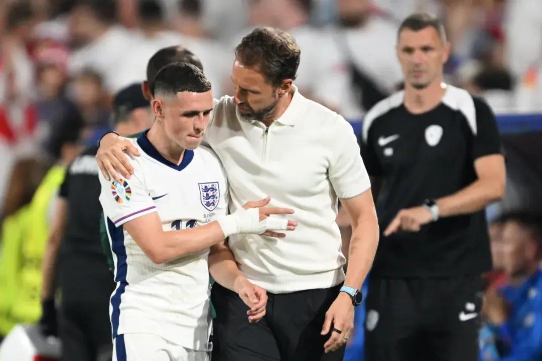 易邊之後,索斯蓋特終於作出了不少球迷期待的一個調整,用曼聯中場梅努替下碌碌無爲的加拉格爾,賴斯也因此迎來了三場小組賽中的第三位後腰搭檔。隨後便是第71分鐘,帕爾默“千呼萬喚始出來”,終於迎來了自己的歐洲盃處子秀。常規時間臨結束前,戈登也完成第一次歐洲盃亮相,在這場比賽之前,包括魯尼、沃爾科特等名宿,都希望索斯蓋特能在左邊鋒位置派上這名速度極快的紐卡斯爾邊鋒,但這,甚至都不在索斯蓋特的B計劃內。