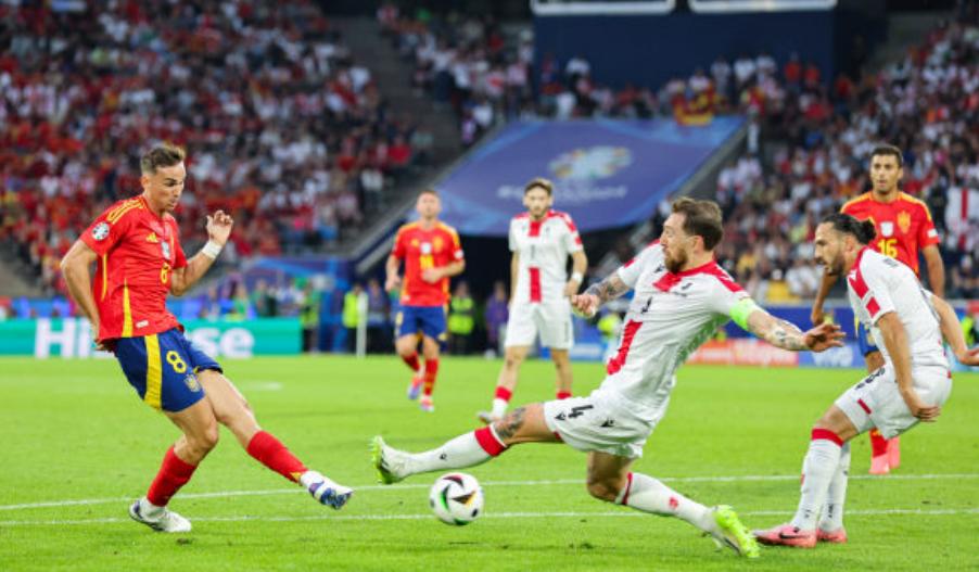歐洲盃1/8決賽,勒諾爾芒送烏龍,魯伊斯、尼科·威廉姆斯分別傳射,羅德里和奧爾莫各進一球,最終西班牙4-1逆轉格魯吉亞。