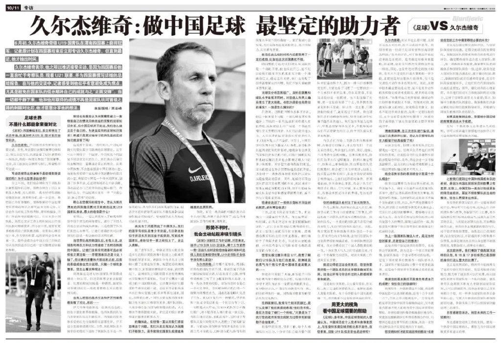 記者賈巖峯報道 6月初,久爾傑維奇帶領U19國青隊在渭南四國賽上獲得冠軍。記者原計劃在四國賽結束後立即專訪久爾傑維奇,但直到最近,他才抽出時間。