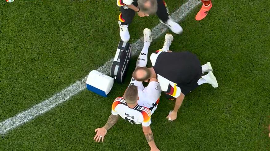加時賽第112分鐘,34歲的克羅斯拼到抽筋,大喘粗氣,這一幕令人動人。克羅斯在本屆歐洲盃前4場比賽只休息了10分鐘。而本場比賽,納格爾斯曼給換了一個首發中場搭檔埃姆雷詹,然後埃姆雷詹在中場休息時就下去了。然後在德國隊丟球后6分鐘,納格爾斯曼又將京多安換下,換上了前鋒菲爾克魯格,這無疑繼續增加了克羅斯的防守壓力。