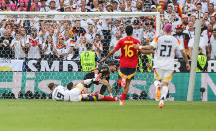 北京時間7月6日00:00,歐洲盃1/4決賽,奧爾莫首開記錄,維爾茨89分鐘扳平,梅里諾加時賽第119分鐘絕殺,最終西班牙2-1淘汰德國,晉級4強。而德國隊則成爲歐洲盃歷史上,首支無法在1/4決賽晉級的東道主球隊。