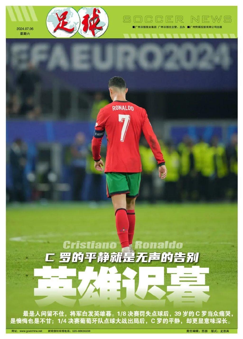4天前是佩佩安慰因罰失點球痛哭的C羅,4天后輪到釋然的C羅安慰同樣痛哭的佩佩。賽後轉播鏡頭一直緊跟C羅,記錄下了他的無奈、悵然和平靜。他接受了格列茲曼短暫的擁抱,轉瞬即逝的笑容更像是尊重對手的肌肉記憶。C羅一路緩慢而平靜地走進更意思是通道,與兩年前在卡塔爾世界盃衣袖擦拭淚水形成鮮明對比。