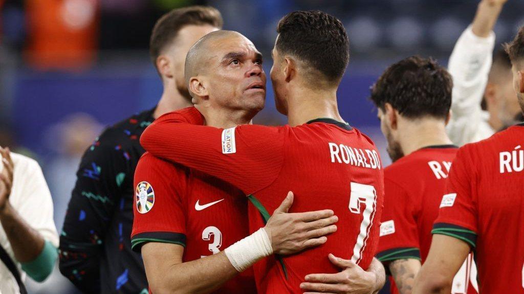 竭盡全力的佩佩仍有不甘,C羅卻已放下。葡萄牙媒體透露:佩佩對安慰自己的C羅說:“謝謝你的一切。”對葡萄牙球迷而言,這是一句充滿了太多回憶和意難平的道謝之詞。