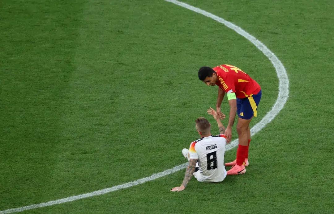 一代中場傳奇克羅斯的職業生涯,以這場歐洲盃東道主在1/4決賽前所未有的失利劃上了句號;西班牙隊終結了1934年以來在歐洲盃和世界盃淘汰賽從未擊敗東道主的“魔咒”,但付出了佩德里重傷剩餘賽程報銷,以及勒諾爾芒和卡瓦哈爾兩名主力無緣半決賽的慘重代價。