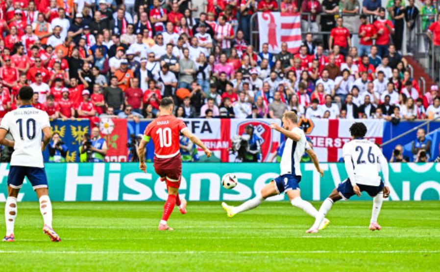 英格蘭這邊帕爾默第一個主罰輕鬆將球罰進,而瑞士這邊阿坎吉罰丟,英格蘭1-0瑞士。