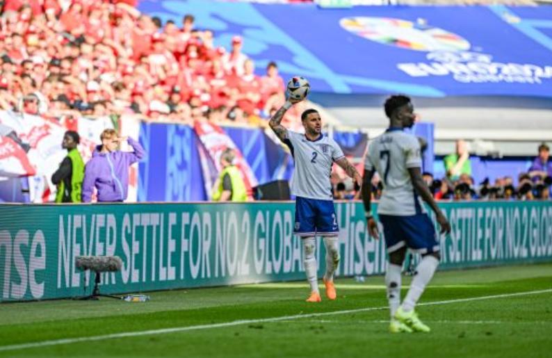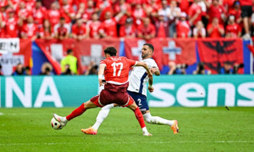 第五輪,阿諾德爆射得手,英格蘭點球大戰5-3擊敗瑞士。