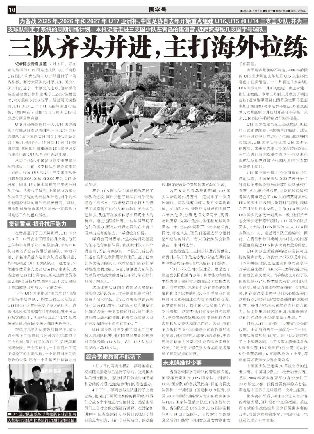 從去年開始,中國足協高度重視國少隊的建設。目前,各支球隊的建設逐步走上正軌。U16、U15和U14三支國少隊分別將參加2025、2026和2027年的U17亞洲盃,因此,U14國少是提前三年進行組隊工作。記者也瞭解到,中國足協爲國少隊準備了系統的海外拉練計劃,對手的水平也隨着球隊的提升而逐步提高。同時,國少隊球員綜合素質的培養一直都是中國足協工作的重心所在。