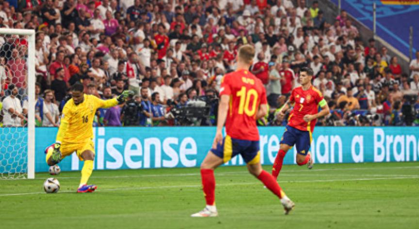 第21分鐘,16歲的亞馬爾世界波破門,西班牙扳平1-1。在第25分鐘,奧爾莫打進了反超比分進球,西班牙在4分零9秒裏完成了從0-1落後到2-1反超的神逆轉。