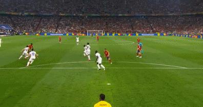 歐洲盃半決賽,西班牙VS法國。法國隊在8分鐘取得1-0領先後,突然在4分鐘之內連丟兩球,從1-0到1-2。