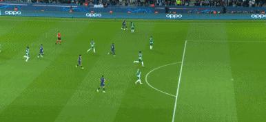 第18分鐘,姆巴佩的助攻,梅西外腳背撩射破門,大巴黎1-0領先。
