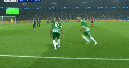第34分鐘,梅西助攻內馬爾破門,大巴黎在短短16分鐘內連進3球,3-0領先!