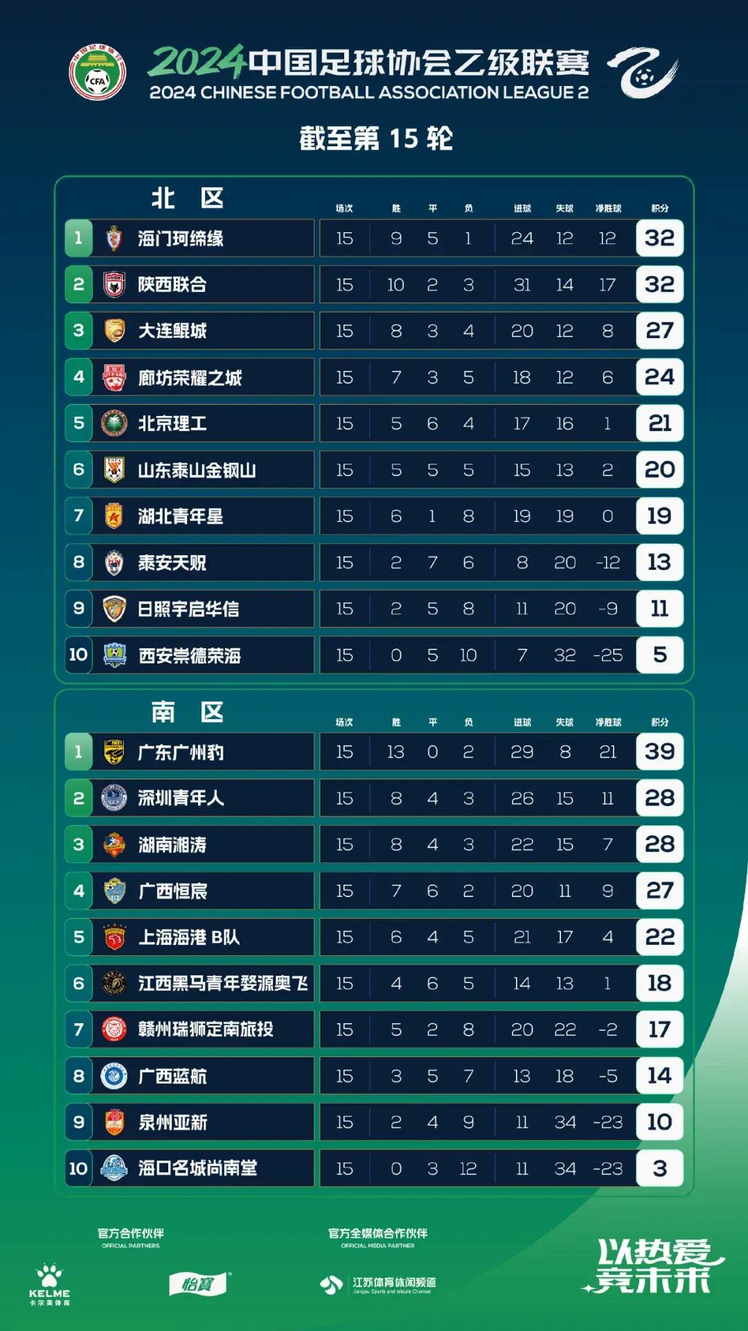 中乙15輪戰罷,廣州豹以13勝2負的戰績暫列南區榜首。