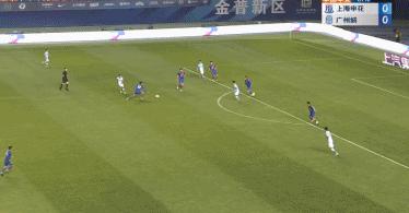 第103分鐘,巴索戈打進這一記絕對意義上的壓哨點球,最終幫助上海申花1-1戰平廣州城。從87分鐘到103分鐘,這16分鐘內真正踢球的時間只有5分鐘。