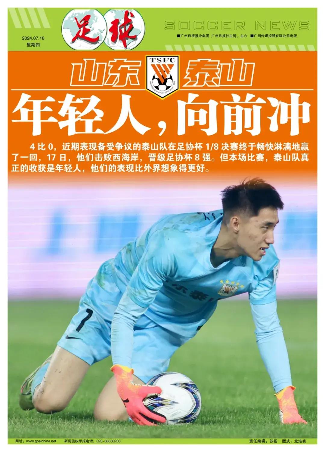 記者陳永報道 4比0,近期表現備受爭議的泰山隊在足協盃1/8決賽終於暢快淋漓地贏了一回,17日,他們擊敗西海岸,晉級足協盃8強。但本場比賽,泰山隊真正有收穫的是年輕人,他們的表現比外界想象得更好。
