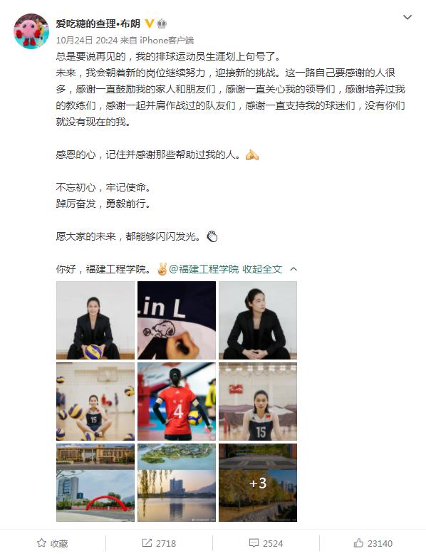 北京時間10月24日晚,中國女排自由人林莉在個人社交媒體平臺宣佈退役。林莉表示:“總是要說再見的,我的排球運動員生涯畫上句號了。”據悉,林莉已經入職福建工程學院,在體育教研部擔任教師一職。而根據福建工程學院的公示資料顯示,林莉的競聘成績位列該崗位第一。