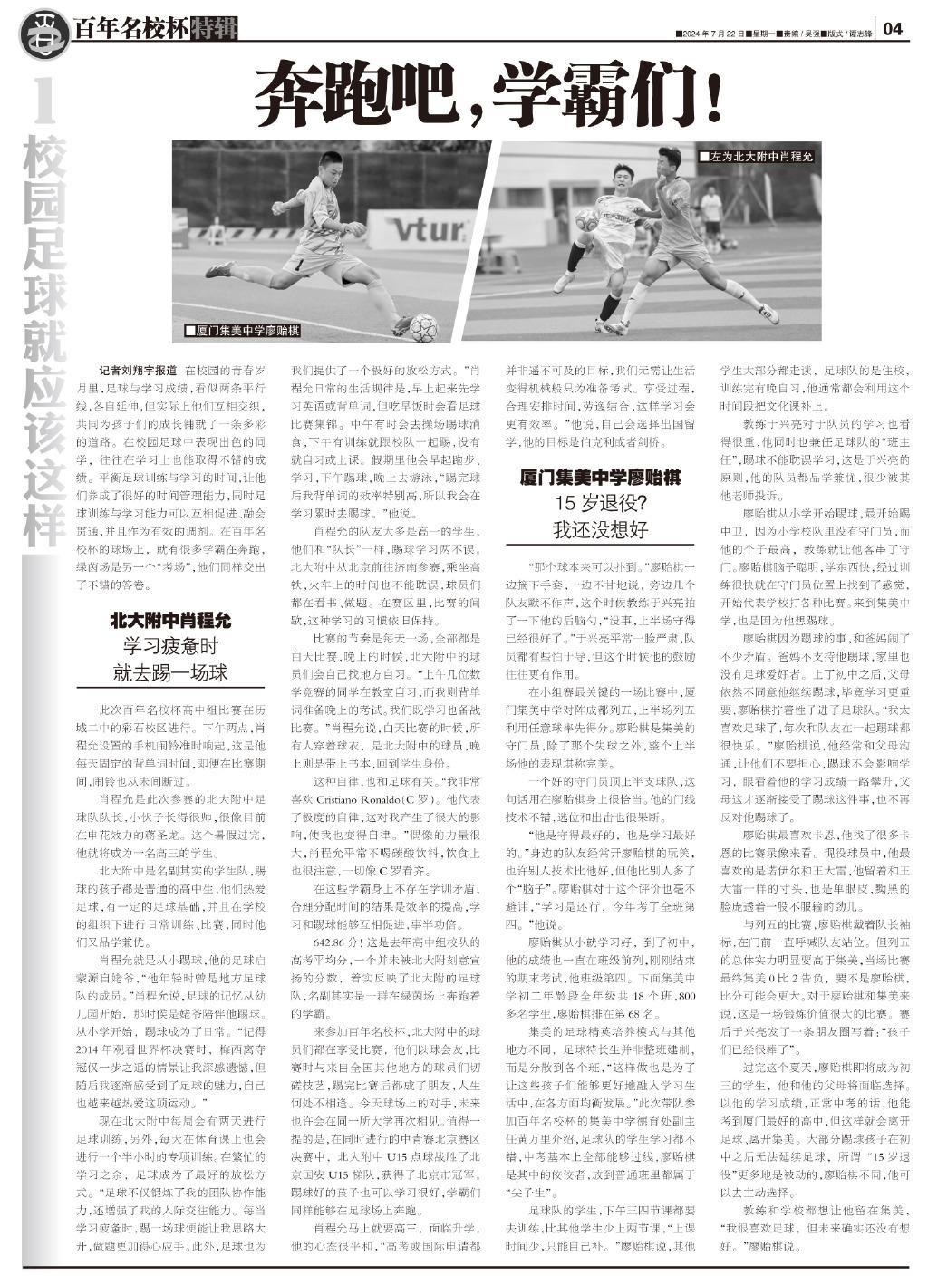 教練和學校都想讓他留在集美,“我很喜歡足球,但未來確實還沒有想好。”廖貽棋說。