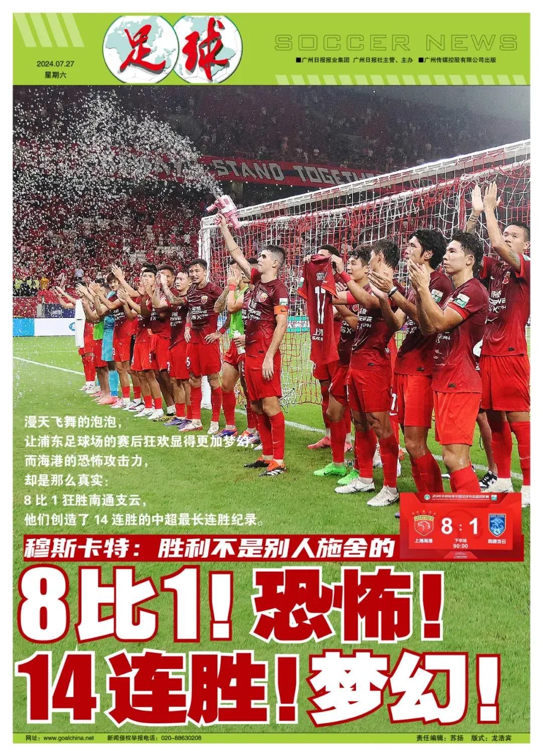 記者程善報道 一場“恐怖”的8比1,海港在主場再次完成自己面對南通支雲的“最低消費”!狂勝對手後,海港本賽季連勝紀錄已經達到14場,刷新了中超連勝紀錄。