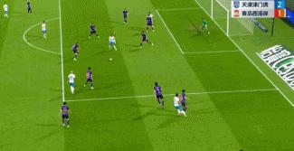 下半場,他在天津津門虎打進第二球的5分鐘後爲青島西海岸縮小分差。當時他在禁區中路拿球,被津門虎三位外援哈達斯、席爾瓦、什科裏奇包夾。結果,他先是一個假身往右移動,什科裏奇直接被晃飛;隨後他將球扣了回來,在哈達斯和席爾瓦面前找到射門空間,起腳打門並將球送進球門。