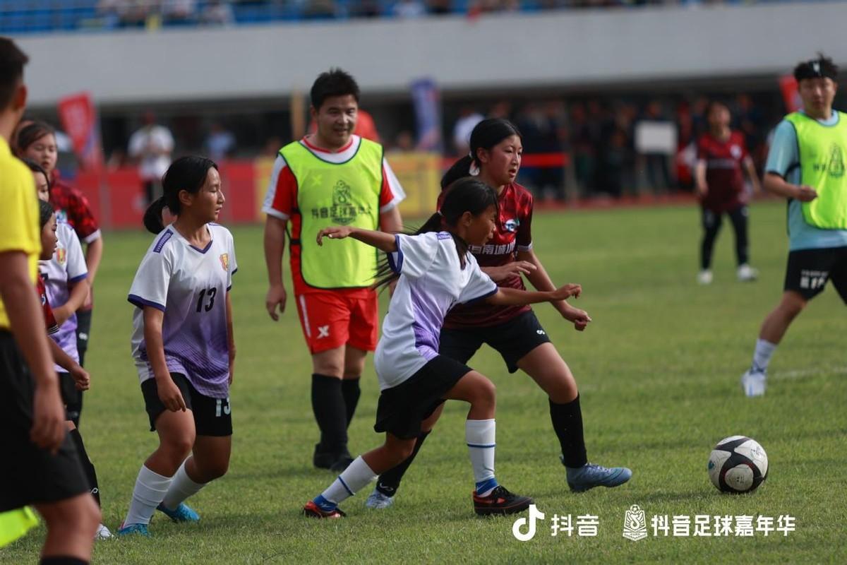 正式比賽前,涼山西昌星河女足、南城女足率先帶來了15分鐘公益足球賽。雙方隊伍各由3名抖音創作者、8位當地青少年組成。飛馳在賽場上的年輕身影,見證着涼山人對足球持久而濃烈的熱愛。