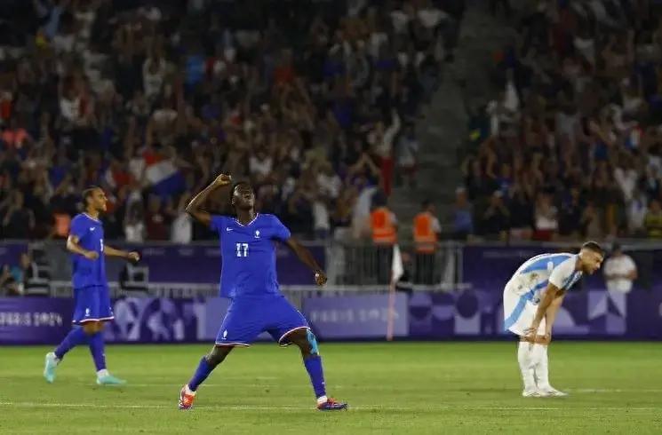 擁有主場之利的法國隊開局5分鐘就取得領先:剛加盟拜仁的邊鋒奧利斯助攻前水晶宮隊友馬特塔頭球破門。第83分鐘奧利斯的進球因VAR裁定隊友阿克利烏舍踩人犯規在先被迫無效,補時第10分鐘馬特塔還曾射門中柱。阿根廷隊最後時刻傾巢而出,遺憾把握機會能力太差,最終法國隊淘汰了兩次奧運男足金牌得主阿根廷隊。