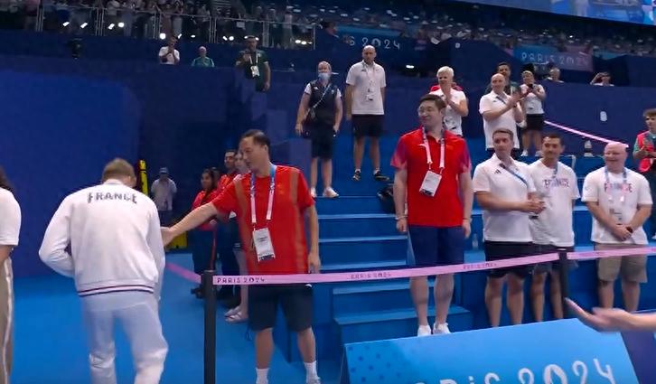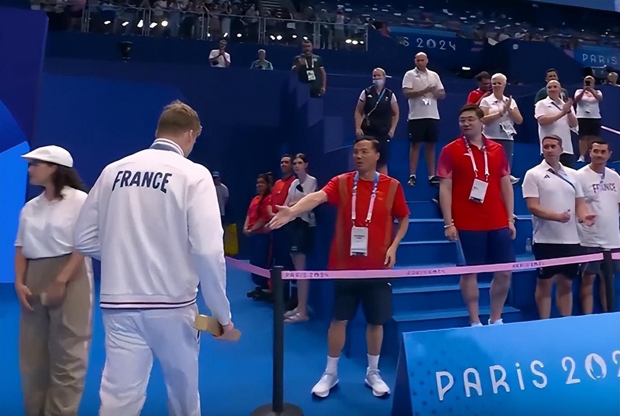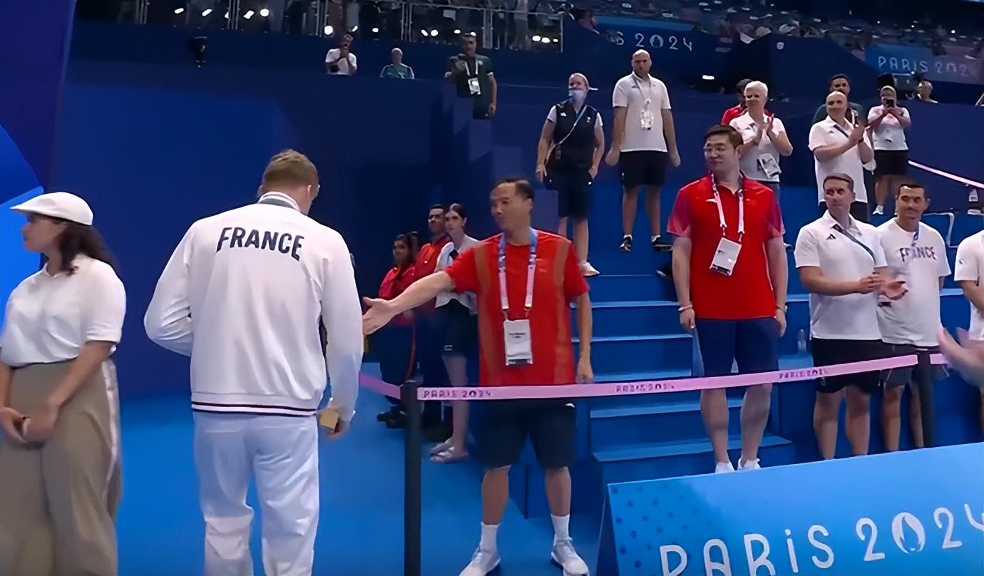銅牌得主、中國選手汪順的教練朱志根爲法國人鼓掌表示祝賀,並在3米開外就提前主動伸手示意想與對方握手致意,他這個尷尬動作持續了兩三秒,但卻遭到馬爾尚的直接無視。