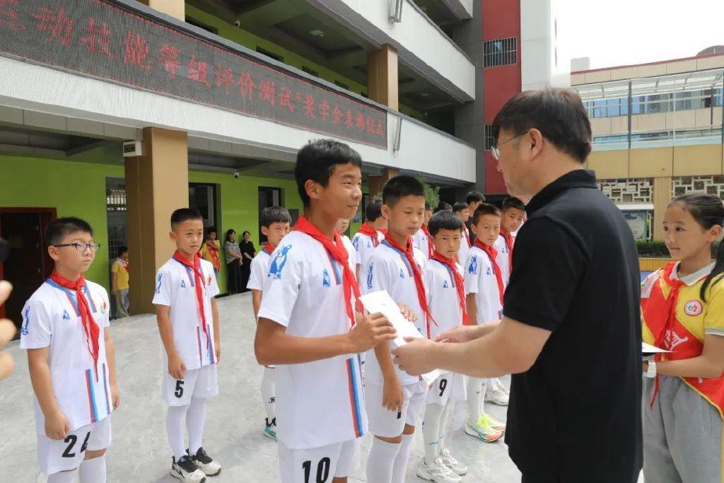 在體教融合的摸索中,侯西科做出了創新,陝師大附小首創了體育運動技能等級評價體系。該評價體系自2022年開始設立,涵蓋了包括籃球、足球、田徑、擊劍、游泳等14個項目,學校設定了等級評價標準和評分體系,學生從四年級開始,可以自願報名參加評測。每個參加評測的孩子都有一本手冊,自選項目進行評分,最高3分、最低0.5分,學校在每年五到七月間進行測評。學校會依照學生在四到六年級累積分數來派發獎學金。