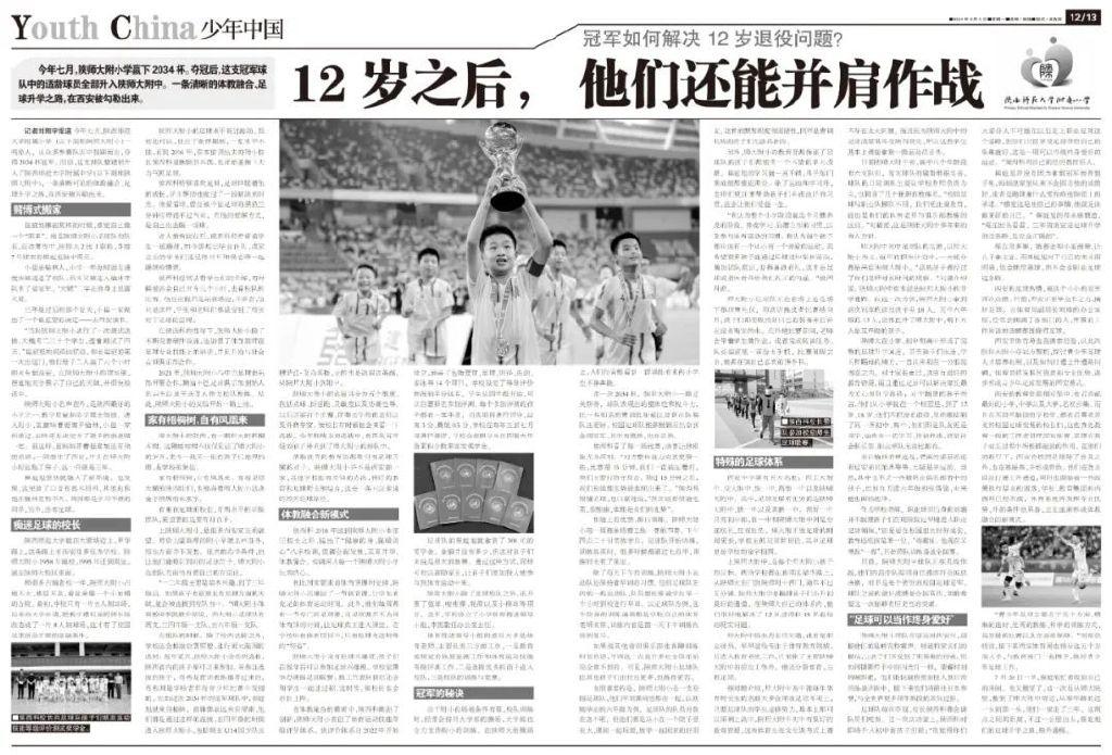 陝師大在小學、初中和高中形成了完整的足球升學通道,甚至孩子們生活、學習和踢球的地方,一直以來都在一公里範圍圈之內。對於家長而已,這裏有最好的教育資源,而且通過足球可以解決家長最爲關心的升學路徑;對於踢球的孩子而言,他們從小學就在一個校園裏,到了12歲、15歲,他們不但沒有退役,反而繼續到了同一所初中、高中,他們即是隊友更是同學,始終在一切學習、並肩作戰,這是社會俱樂部、職業梯隊無法比擬的。