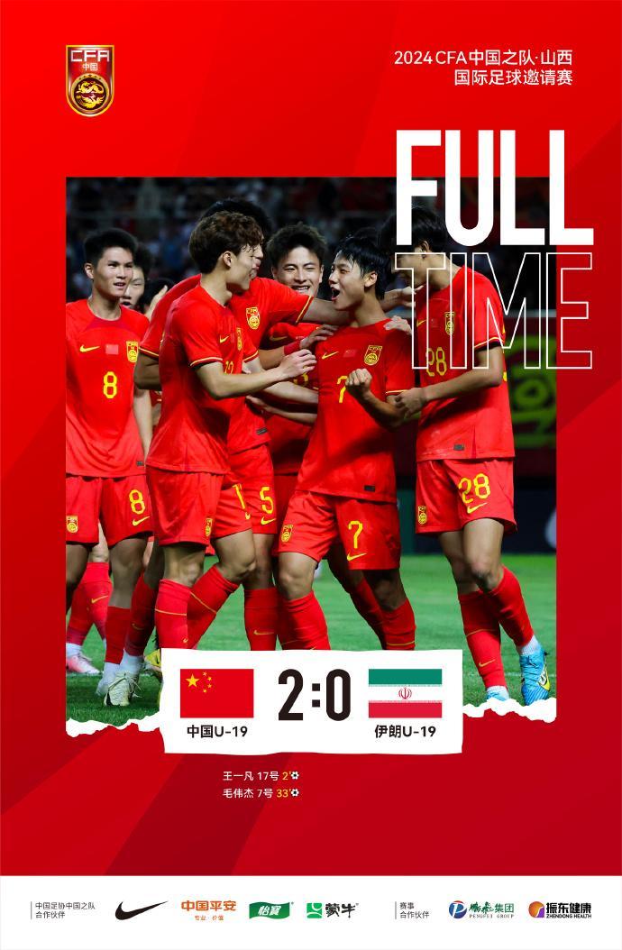第33分鐘,閔紫曦開出的角球被對方後衛頂出危險區域,毛偉傑大禁區前凌空抽射,打出一記世界波攻破伊朗U19球門,比分被擴大爲2比0。這是他爲國青隊打入的首粒進球。賽後,毛偉傑在自己的社交媒體上感謝了所有支持球隊的球迷。此後,中國U19繼續利用邊路進攻做文章,還有一次進攻擊中門柱。整個上半場,伊朗隊只是在半場補時階段利用任意球完成了一次毫無威脅的頭球攻門,而中國U19的控球率達到58%,射門次數爲6比1,如此巨大的場面優勢在中國U19近期的比賽中並不多見。