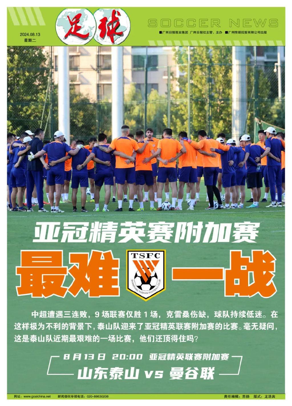 正是在這樣極爲不利的背景下,泰山隊迎來了亞冠精英聯賽附加賽的比賽。8月13日晚8點,他們將面對上個賽季亞冠聯賽F組頭名、力壓全北現代的曼谷聯,毫無疑問,這是泰山隊近期最艱難的一場比賽,他們還頂得住嗎?