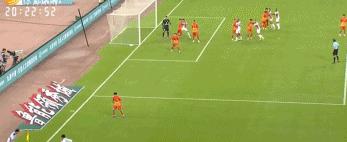 第68分鐘,日夫科維奇禁區右側兜射擊中橫樑,山東泰山逃過一劫。