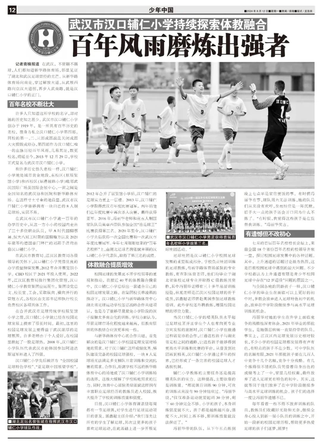 在武漢市漢口輔仁小學逾一百年的辦學歷史中,從這一方小小的校園內走出了三十多位職業隊員,甲A時代國腳蔡晟、恆大八冠王時期的國腳梅方以及2021年底簽約德國豪門拜仁的劉邵子洋均出自漢口輔仁小學。
