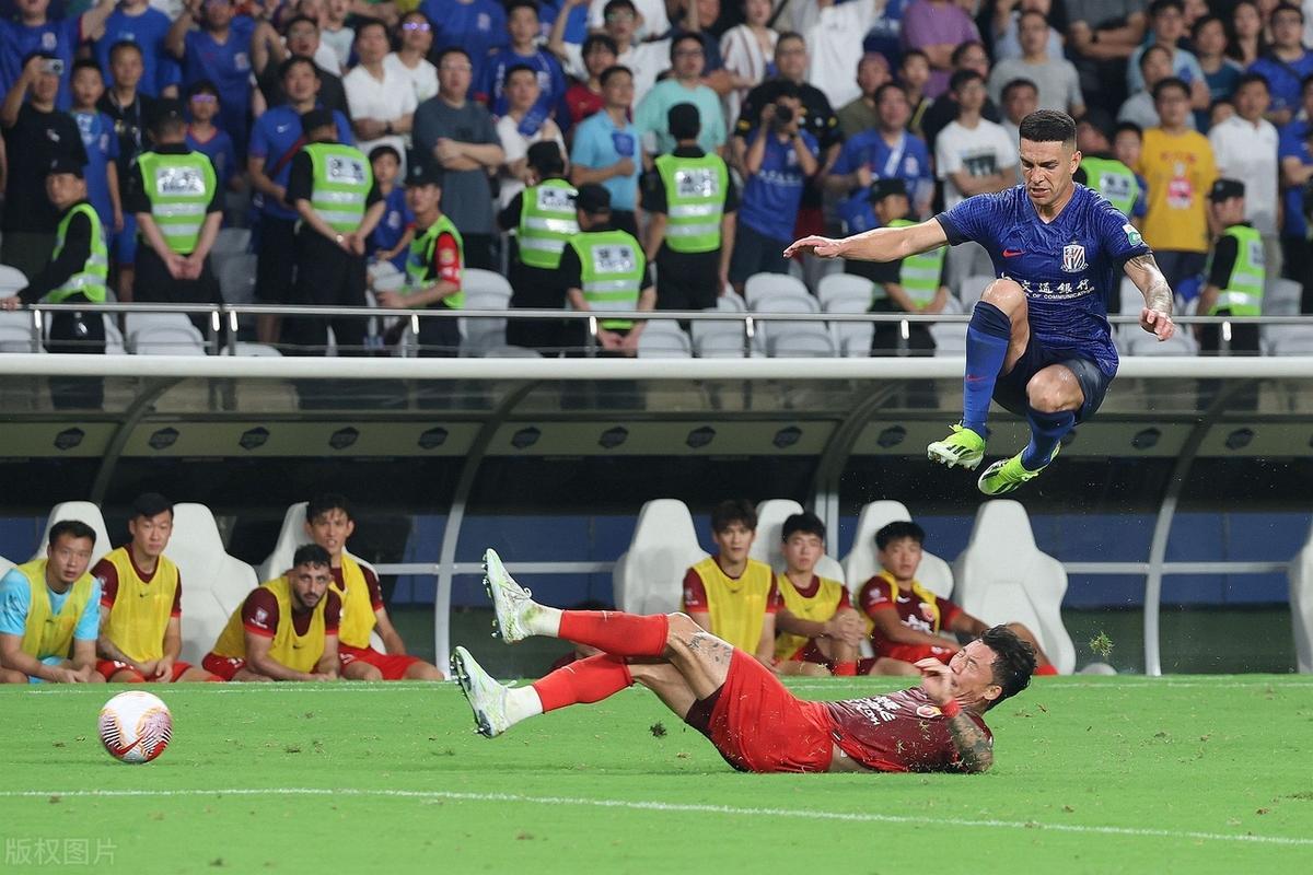 第57分鐘,徐皓陽前場右路分球,費南多漏球轉身直接起腳低射被顏駿凌撲住,不到半分鐘後,申花再次進攻,特謝拉禁區前橫傳,費南多再次遠射擊中立柱彈出;
