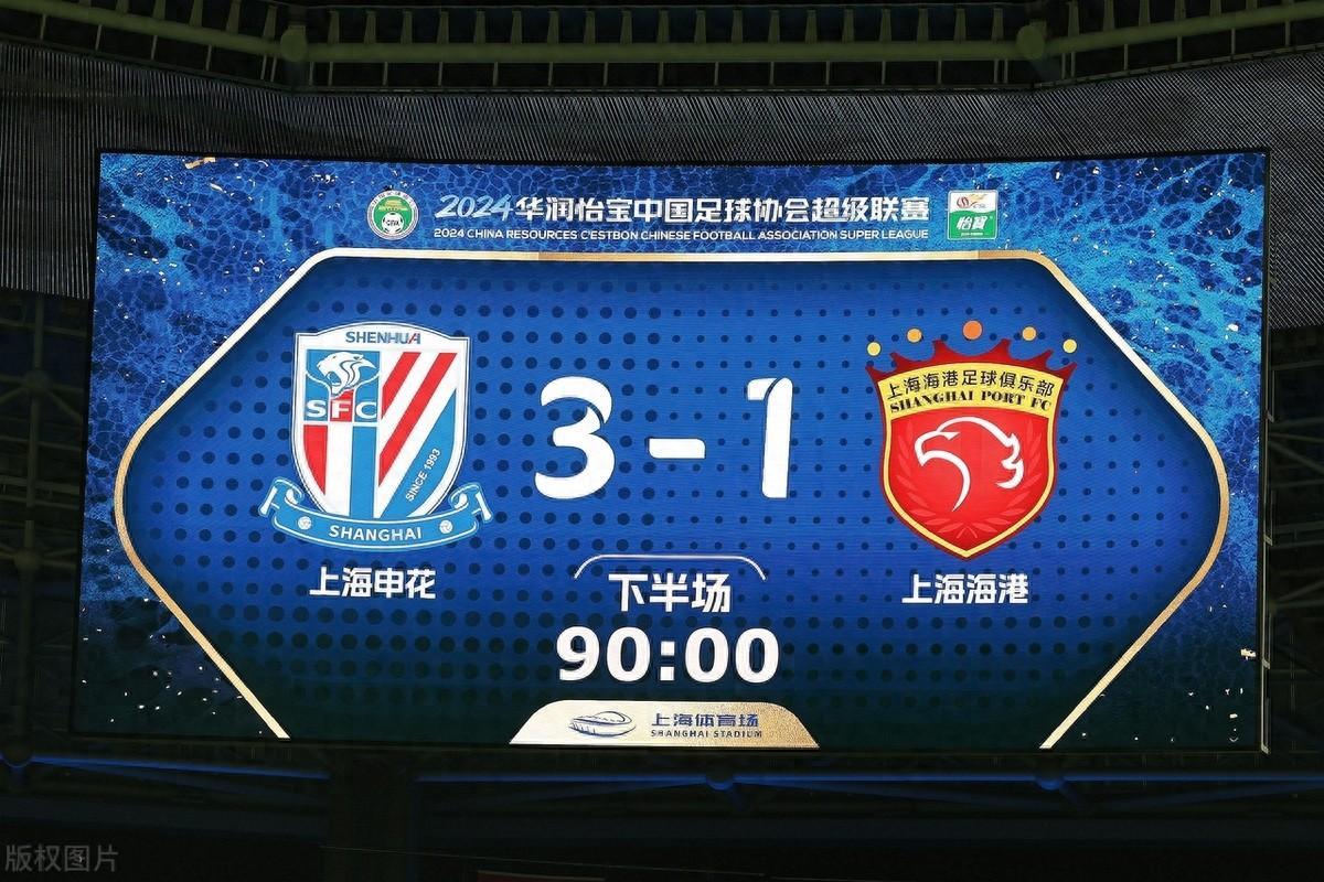 第97分鐘,申花打出反擊,路易斯禁區右側勁射破門,申花3-1海港;最終全場比賽結束,上海申花主場3-1擊敗上海海港。
