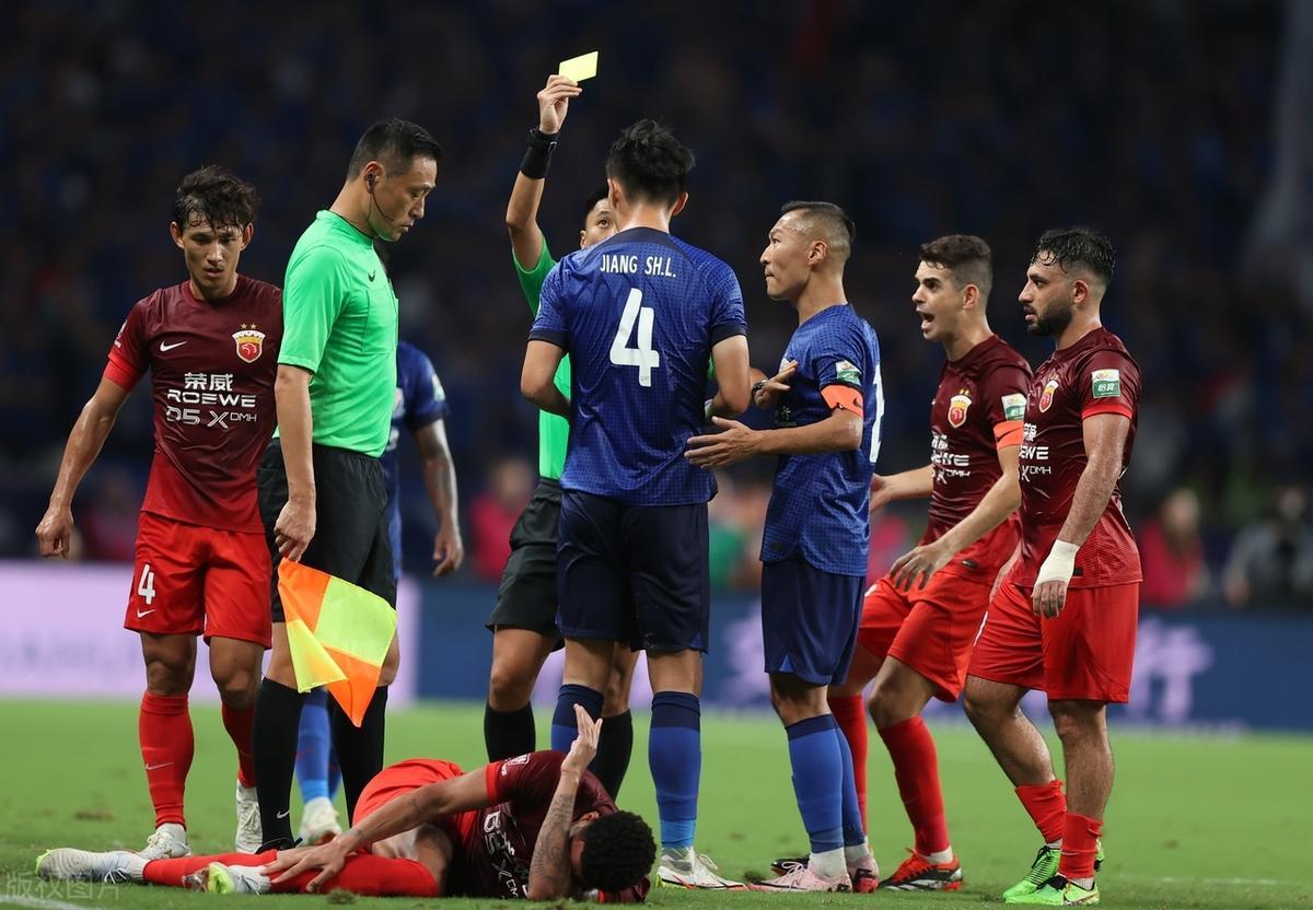 第23分鐘,魏震後場回防時飛鏟蹬踏費南多小腿,主裁判馬寧向其直接出示紅牌罰出場,海港少打一人;