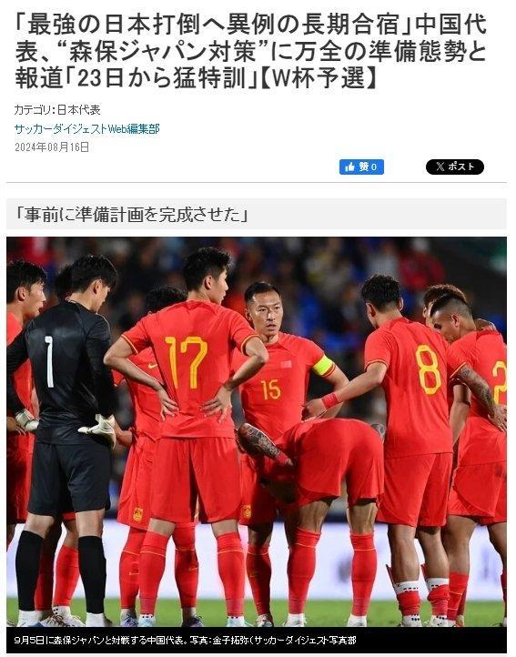 值得一提的是,日本媒體也非常關注國足的備戰動態。《足球文摘(Soccer Digest)》轉載了中國媒體的報道,強調國足延續了長期集訓的傳統:“急於復仇的中國隊將於8月23日在大連集訓,9月2日從大連飛往東京,備戰9月5日對日本隊的比賽。”日媒還提及韓國媒體《體育京鄉》也關注了國足的長期集訓:“因爲首個對手是小組最強的日本隊,中國隊早早集結備戰。”相比之下,日本足協依然保持了短期集訓傳統。8月29日才公佈大名單,9月2日纔會集結球隊,只有3天的訓練時間,9月5日就將主場對陣國足。