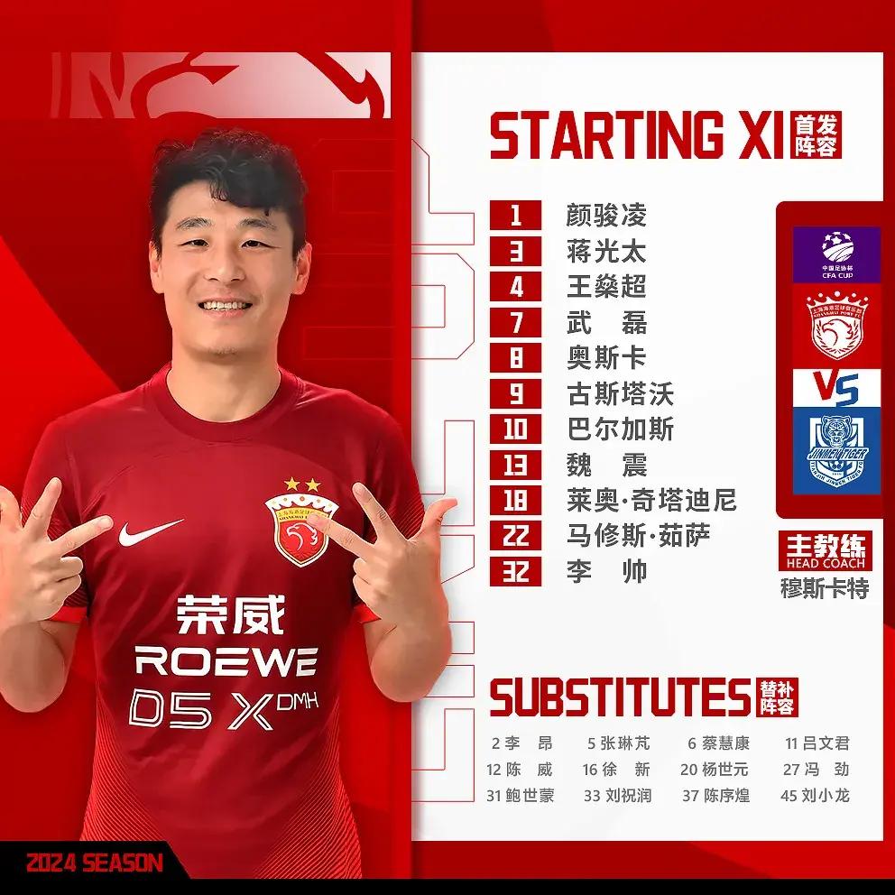 海港首發則沿用了德比陣容,主力盡出,五外援+四國腳披掛上陣,沒有任何保留。