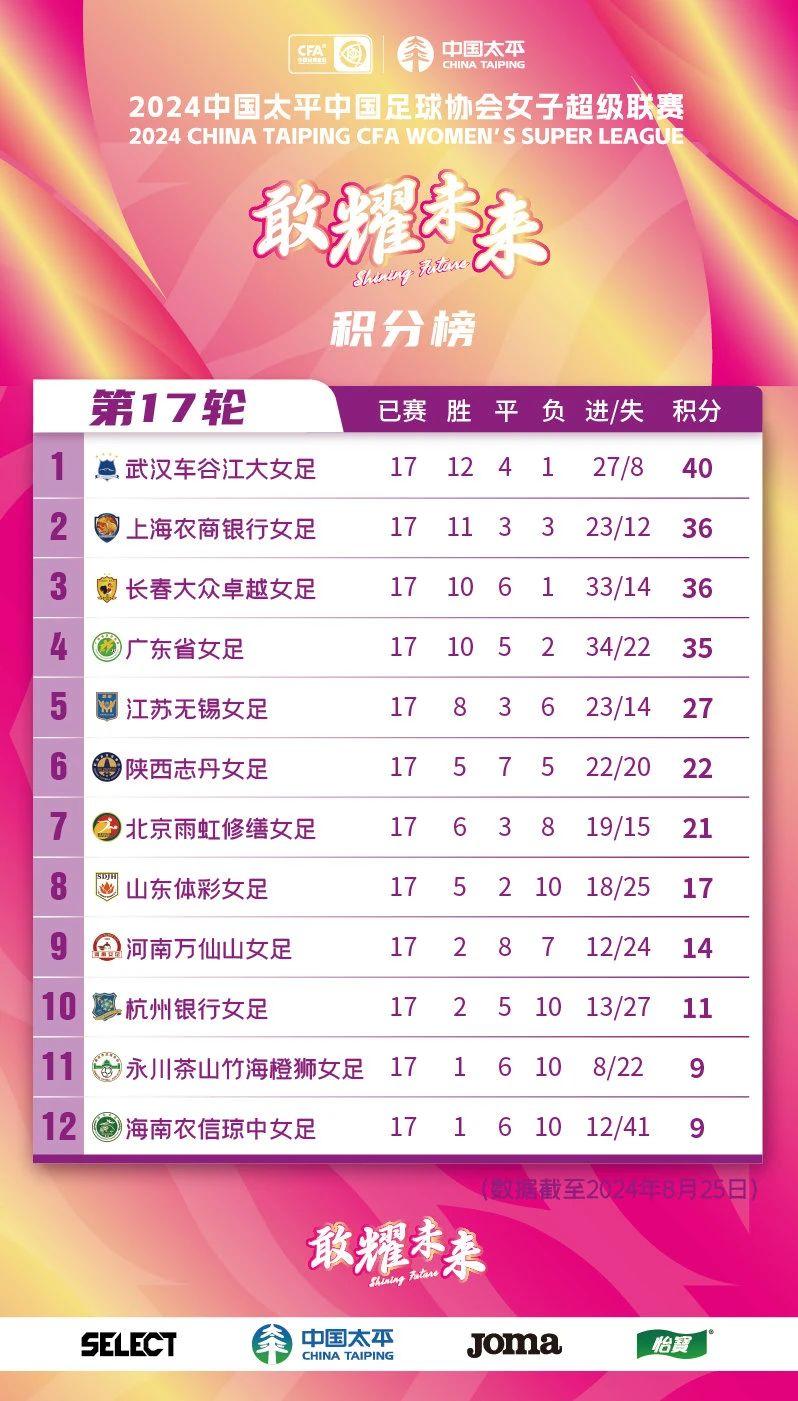 按照今年女超規則,倒數第一直接降級,第二要和女甲亞軍打附加賽,勝者留在女超。目前,女超還剩5輪,海南瓊中女足和永川女足都是9分、杭州女足11分,瓊中女足的保級形勢非常危險。