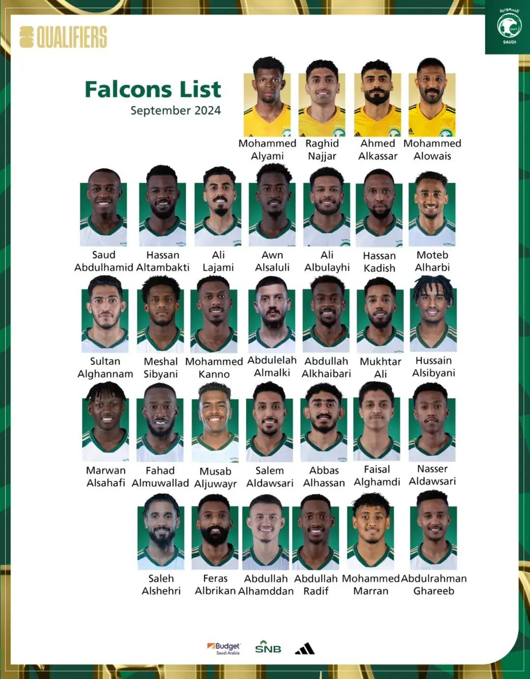 相比6月36強賽的大名單,主帥曼奇尼放棄了6名球員,包括門將阿布西(利雅得青年)、後衛布賴克(利雅得新月)、後衛哈米德(吉達聯合)、中場艾哈邁德·加姆迪(吉達聯合)、葉海亞(利雅得勝利)、納傑(利雅得勝利)。