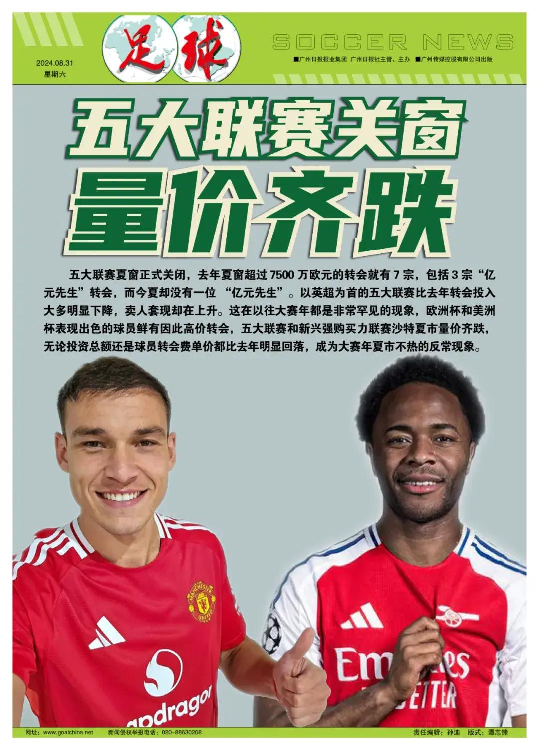 英超今夏賣人收入高達15.9億歐元,超過去年(15.3億),夏窗淨投入從去年的12.7億銳減到7.64億,下降40%!夏窗出售球員收入突破1億歐元的12傢俱樂部,8家來自英格蘭,其中英超佔了7家,另一家是英冠的利茲聯(1.63億)。衛冕冠軍曼城甚至夏窗球員交易淨盈利1.16億歐元,投資1.76億歐元創俱樂部紀錄的阿斯頓維拉,實際淨投入僅3120萬歐元。整個英超夏市淨投入超1億歐元的只有布萊頓、伊普斯維奇和曼聯三家,