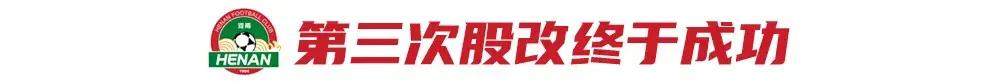 俱樂部不斷地向河南省政府和體育局提交股改方案和計劃,最終,得到了省文旅旗下豫健集團的回應。逐年降低預算、俱樂部營收逐步增長、青訓全面開花結果,配套體育產業做到位,成爲第三次股改的條件。最終,在省市兩級政府和兩方股東的支持下,同年八月,第三次股改終於敲定,鄭發集團和豫健集團“六四”分的股權方案落地,隨着股改成功,俱樂部上下包括球員士氣大振,連勝海港、申花。