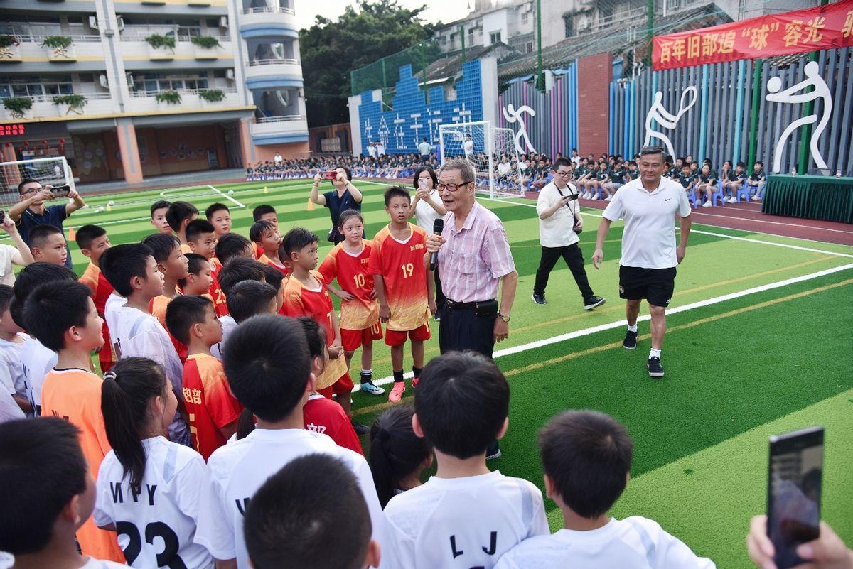 9月2日下午,在2024學年開學第一天,中國足球名宿、被譽爲“中國貝利”的容志行蒞臨廣州市越秀區舊部前小學,在舊部前小學的綠茵球場爲學校的孩子們開啓了校園足球第一課,已經76歲的容志行老師不顧炎熱天氣,走上舊部前小學足球場手把手教授學校足球隊員技術,在差不多一個小時的指導中,容志行老師細心而專業的指導點燃了師生們的足球熱情,身體力行地詮釋了“志行風格”。目前,廣東省足球協會正在開展傳承弘揚“志行風格”活動,這堂課不僅激發了學生的愛國情懷和體育精神,還點燃了孩子們的學習熱情,引導學生將“志行風格”和奧運精神融入日常學習生活中,以更加飽滿的熱情和堅定的信念迎接新學期的挑戰。