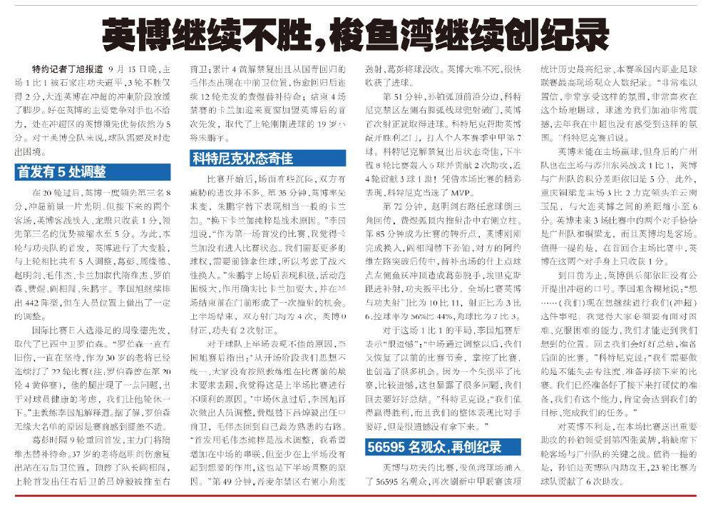 對英博不利是,在本場比賽送出重要助攻的孫鉑領受到第四張黃牌,將缺席下輪客場與廣州隊的關鍵之戰。值得一提的是,孫鉑是英博隊內助攻王,23輪比賽爲球隊貢獻了6次助攻。