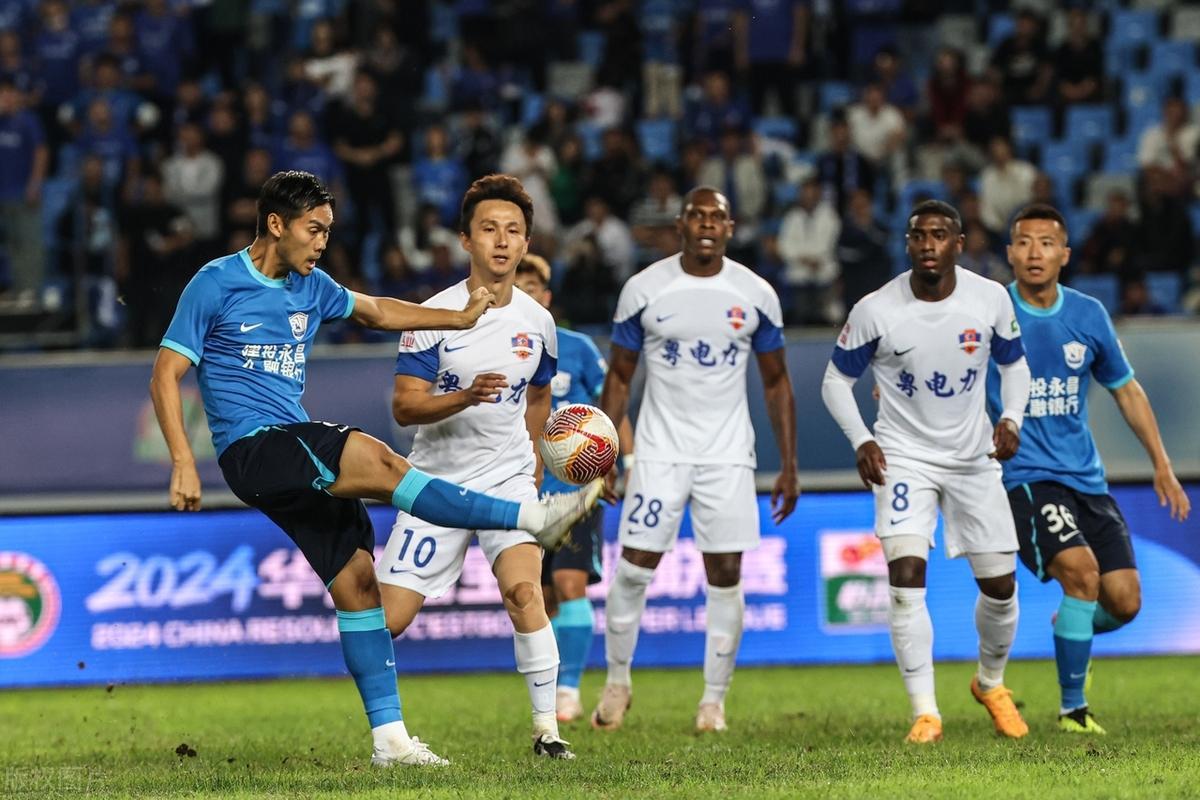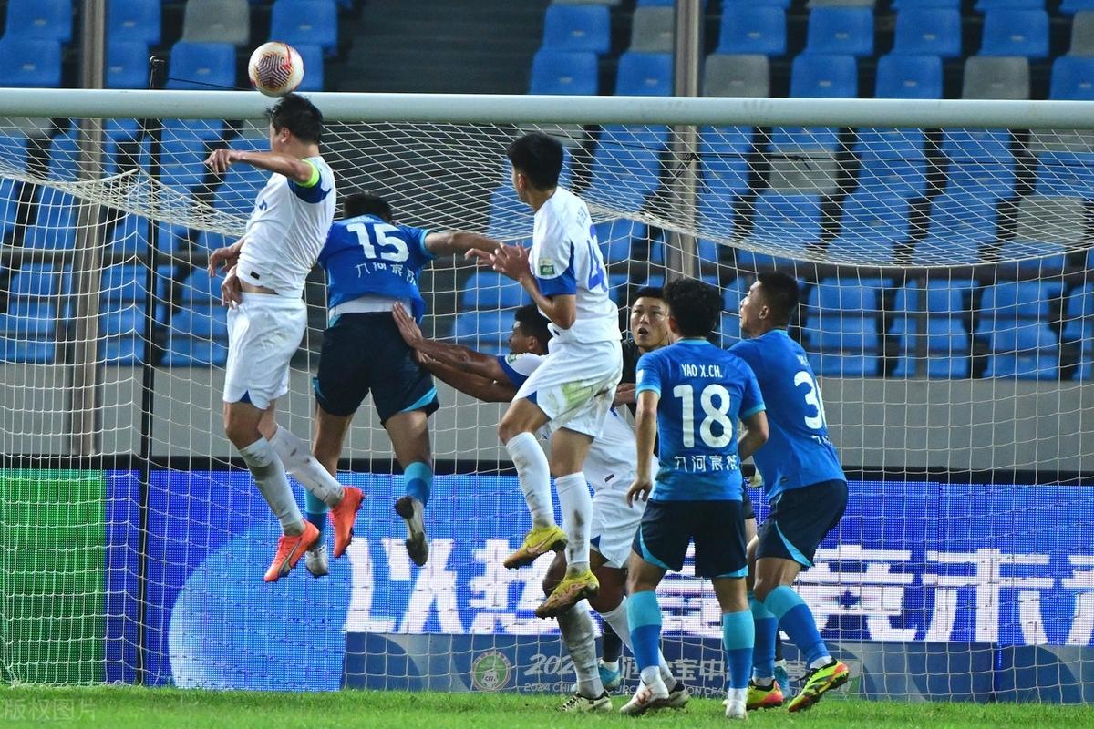 第 39 分鐘,滄州雄獅開出的角球指向前點,王鵬回頭望月,將球頂入大門!1 - 0 !滄州雄獅率先打破僵局,取得進球!